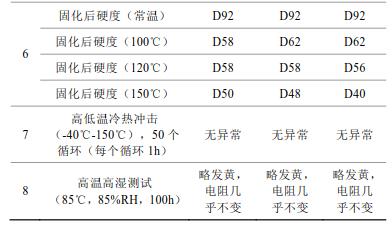 2)球磨35h制得的片狀銀粉制得的導電銀膠,銀膠的粘度、觸變指數、推力測試、導電性能、點膠、固化后硬度測試、高低溫冷熱沖擊測試及高溫高濕測試均滿足應用。